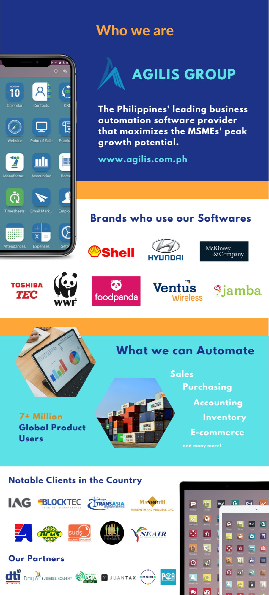How we see it is that the majority of Philippine businesses, particularly small and medium sized enterprises, are increasingly going for automation and integration in their operations. They want to eliminate or significantly reduce losses in time, money, and opportunities; improve efficiency and productivity; and enhance their competitiveness and profitability. They are looking for the company that can bring the most value at the best price point to help them achieve these goals. This is where Agilis comes in.